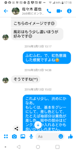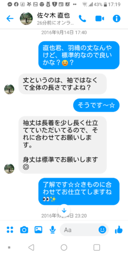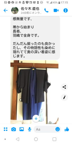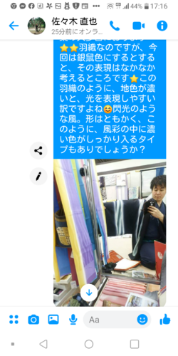 以下に、お着物お誂えの後、羽織をお選びいただくメッセージのやり取りを、長くなりますので途中からですが、そのまま載せさせて頂きます☆