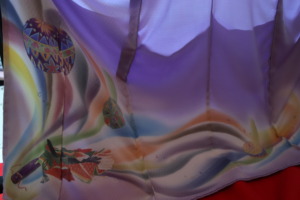 今回のお着物は、まず柄の部分を仕上げて、その後、地色をお決めくださりました。ご納品では、勿論凄くお喜びくださいました。
