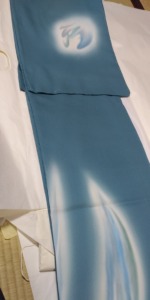 東京の方なので、一度工房においでいただき、生地と地色を決めた後、下描きはメールなどでご確認頂きました。