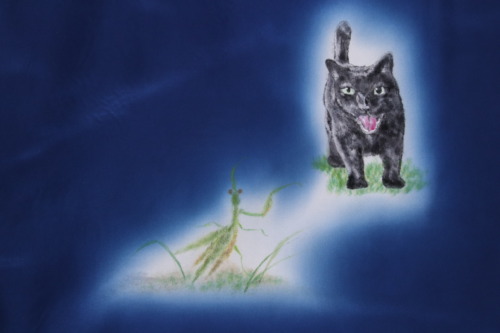 男物羽裏 Share Tweet Pin it 愛猫を羽裏に染めてほしい、とご依頼のお客様、ストーリーが相まって、 「カマキリと戦わせる!!」というストーリーが出来ていました。 そして、カマキリ入りの羽裏へ。。。!!! 男物額裏:¥300,000 『ペットちゃん』 ギャラリーアーカイブ PREVIOUS NEXT