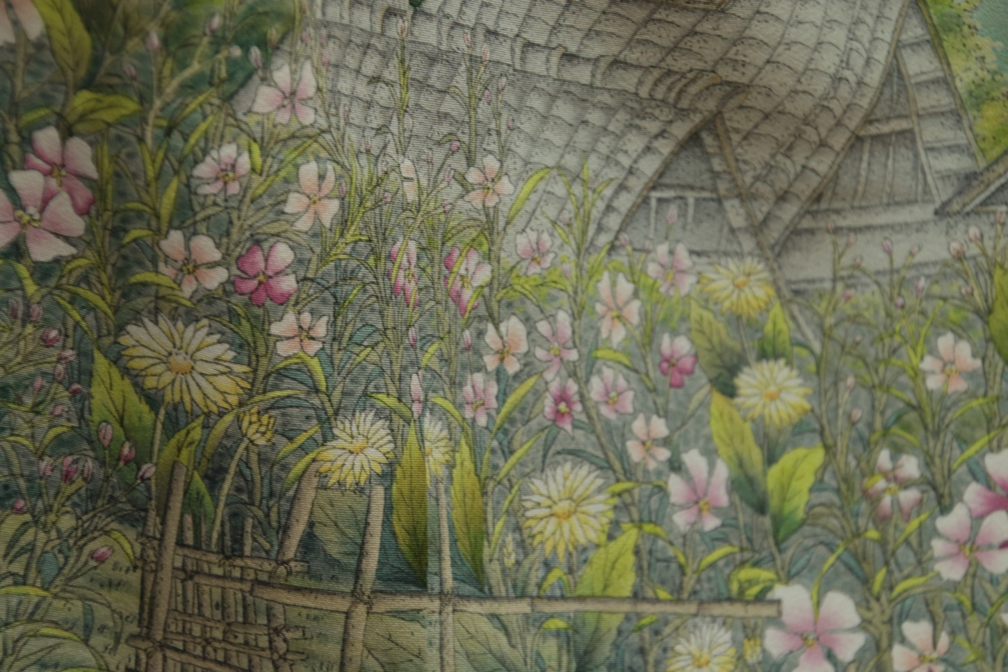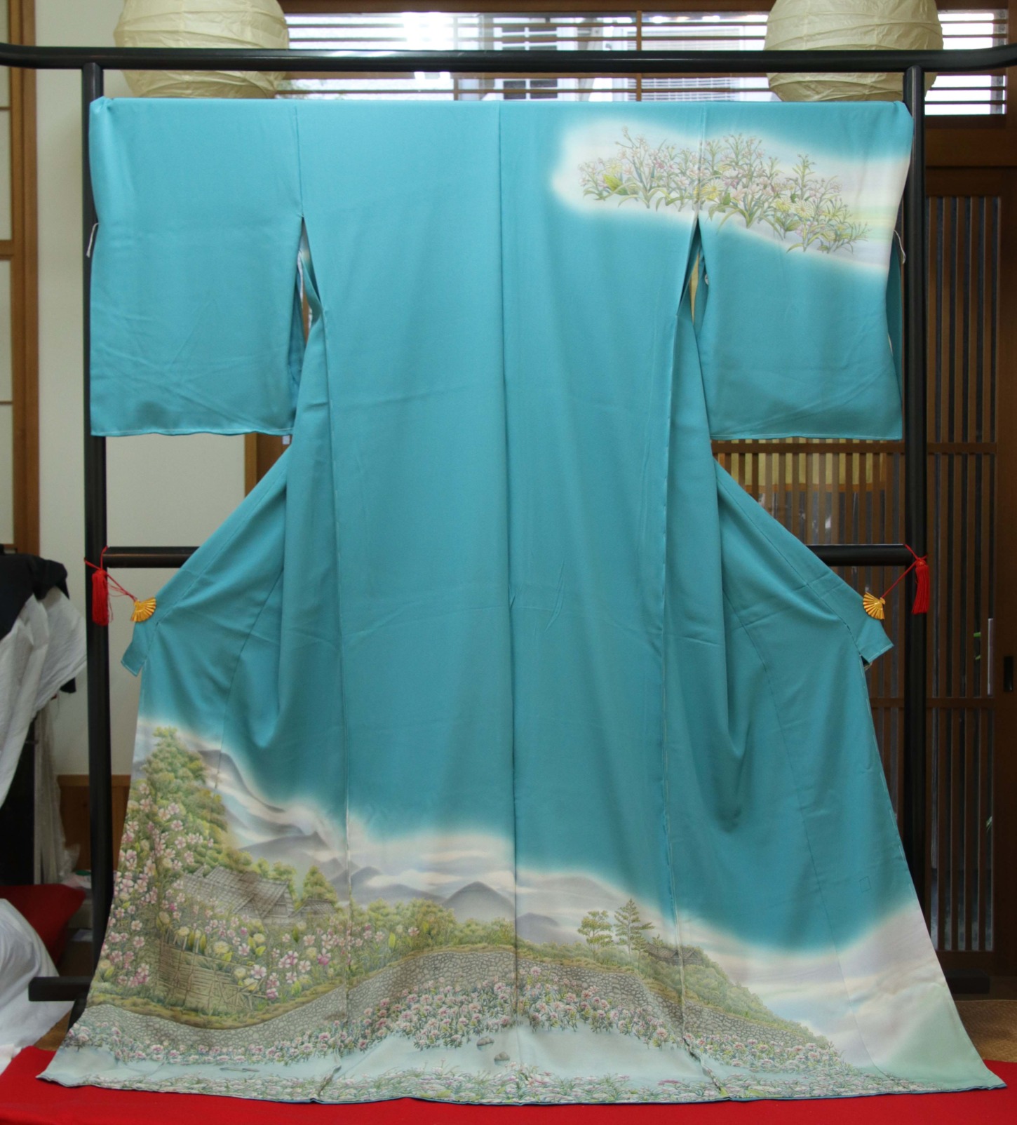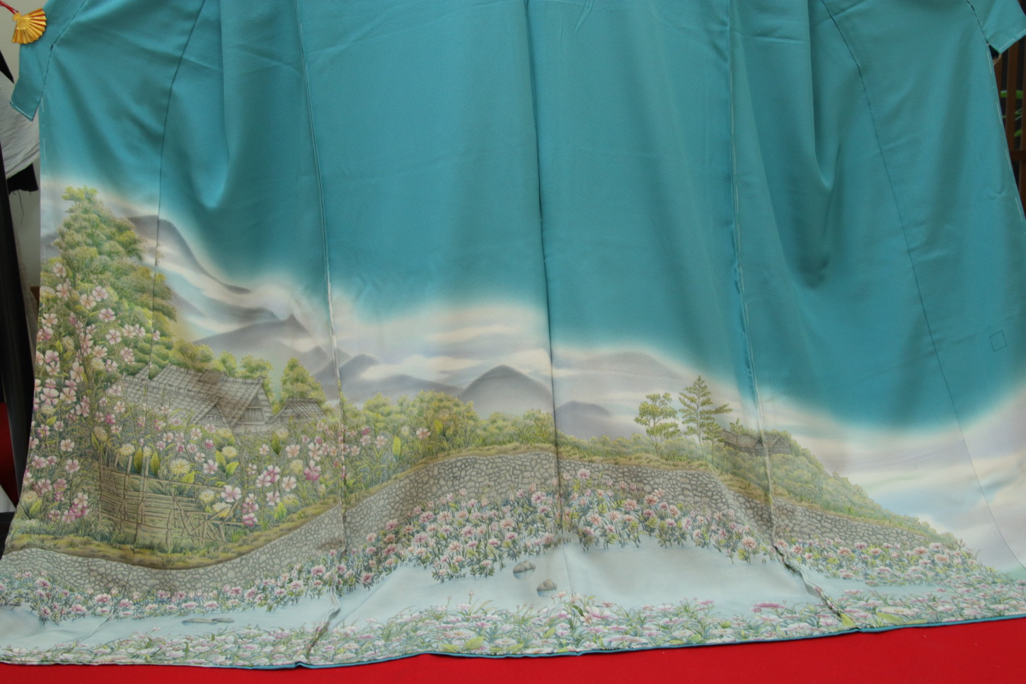 こちらは工房にすでにある参考作品です。細密友禅と呼ばれる景色のお着物があります。