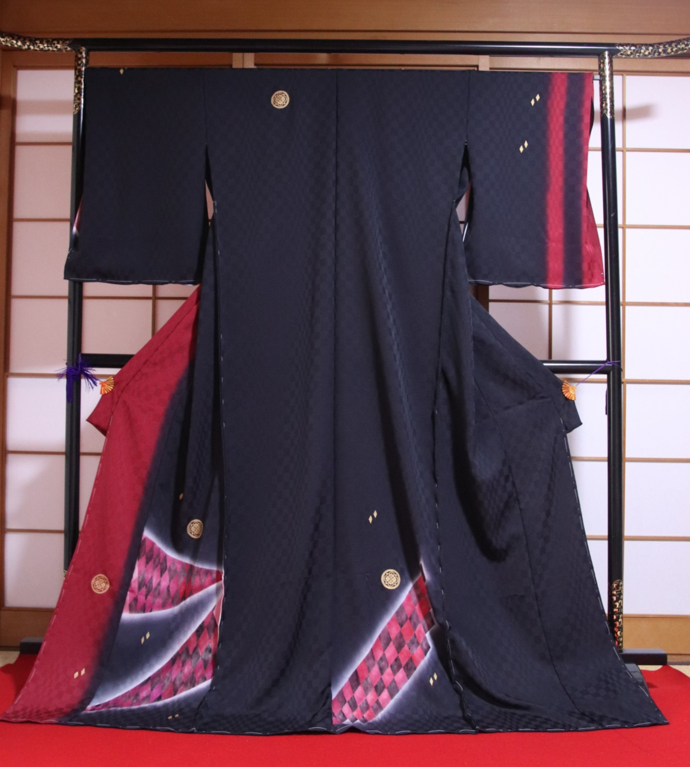 加州清光『刀剣乱舞』より( 参考作品) Share Tweet Pin it 『刀剣乱舞』の沖田総司の刀、加州清光を、着物にしてみました。 『comic』 金彩友禅にて紋も再現。光は抑えめにしました。「河原の子」ですから。。 袖の部分も、二色の「引き染め」によって再現。 衣桁に掛けた時より着る時美しい。 付喪神宿って、女子にならないかな。。。 ギャラリーアーカイブ PREVIOUS NEXT