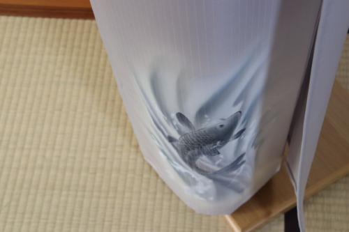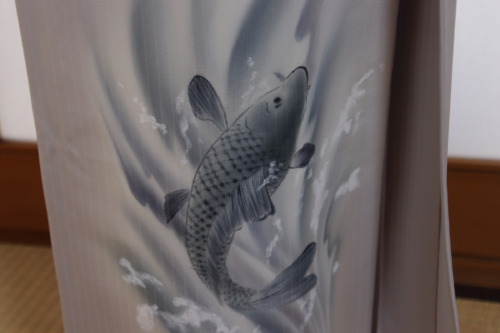 そんな想いを持たれてのご注文ですので、勢いのある姿になるように致しました。後ろの裾にきて、羽織を着ても鯉が見えるようにしています。