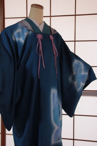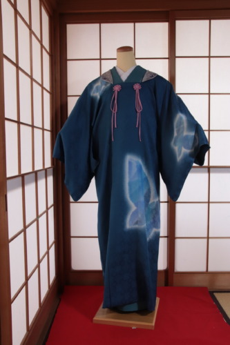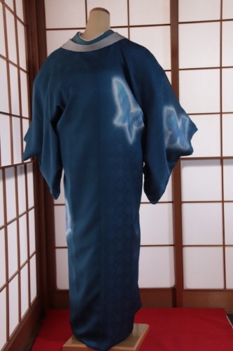 こちらは、ご注文から長らくお待ちいただきましたが、蝶の配置などはお客様がお決めくださり、そのイメージから、昨今では珍しい絵羽コート(縫い口をまたいで柄がつながるコート)を染めさせていただきました。